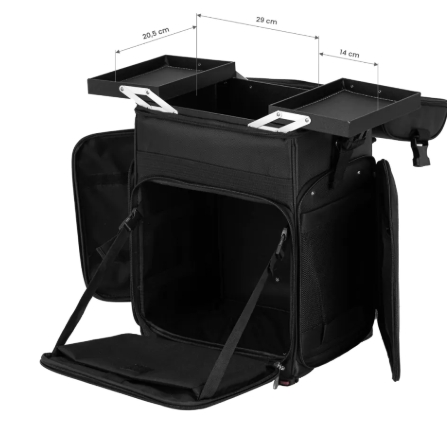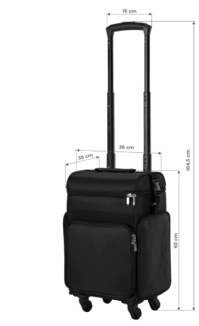 The practical bag is equipped with a comfortable, extendable handle and easily removable wheels. The spacious interior allows you to quickly separate and store many cosmetic items so that all the necessary items find their place.