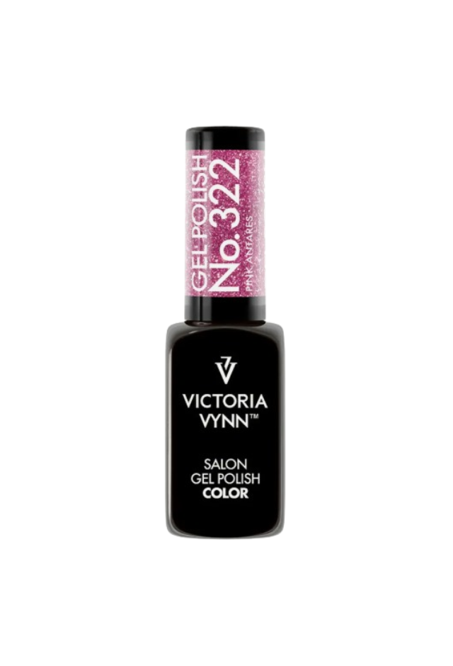 Victoria Vynn Gel Polish Color No 322 Pink Antares 8 ml. A sparkling purple with plenty of glitter. Two thin layers provide ideal coverage and depth of color. Medium thick consistency that does not run. Spreads evenly with a flat brush.