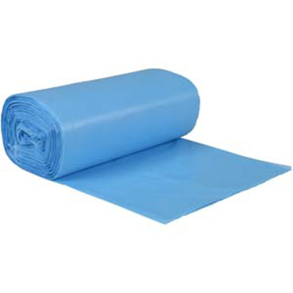 Traditioneller blauer, preiswerter Müllsack für leichten Müll. Der Boden des Beutels öffnet sich beim Öffnen sternförmig, so dass er leicht in die Mülltonne gesteckt werden kann. Material: recyceltes MDPE, Größe: 50×50 cm, 25 L. 50 Beutel pro Rolle. Dicke: 10 Mikron