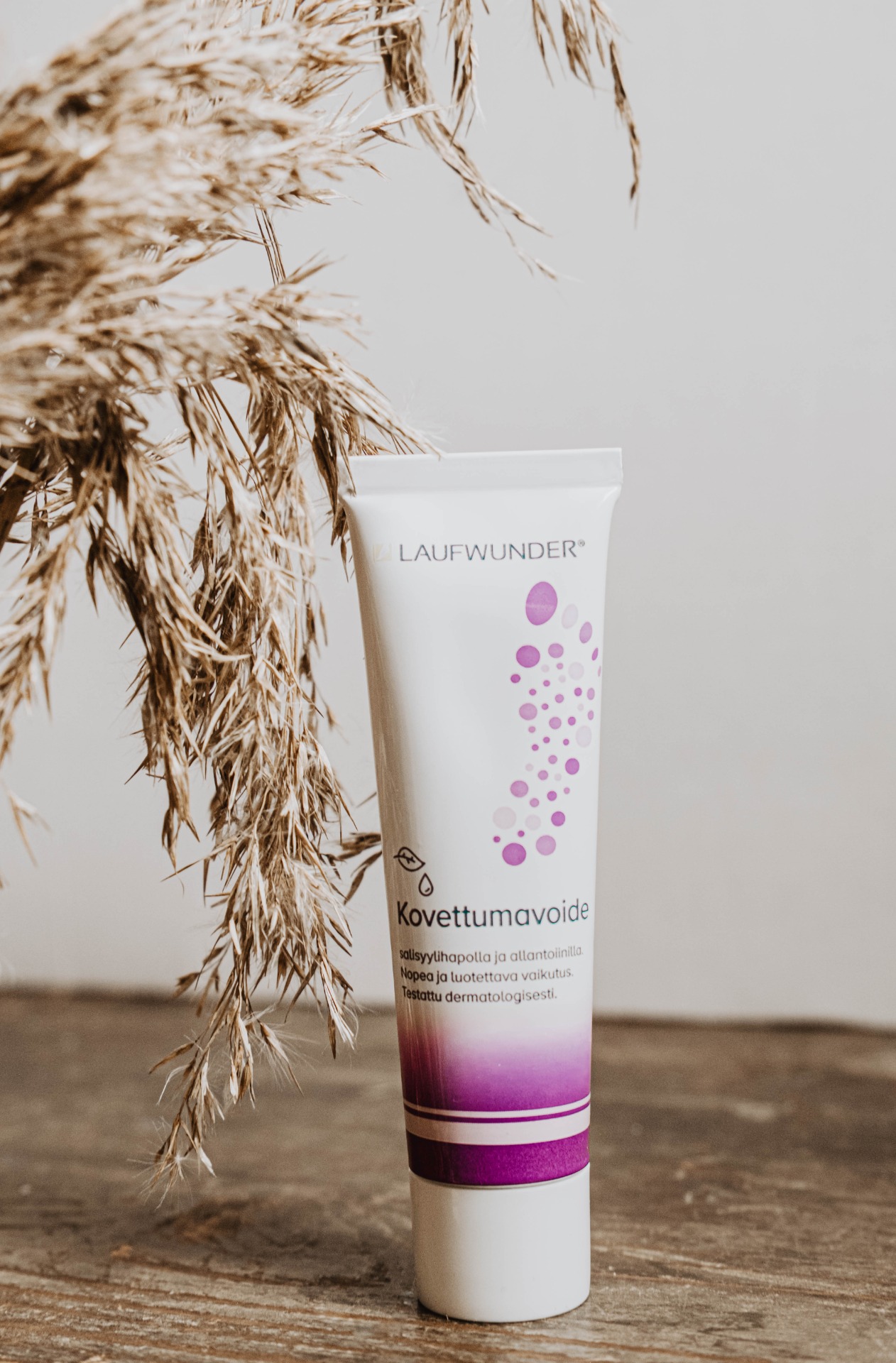 Laufwunderin kovettumavoide sisältää salisylihappoa, joka hellävaraisesti pehmentää jalkoihin muodostuneita kovettumia samalla kun se hoitaa ihoa. Voide pehmentää jalkojen ihoa ja tekee siitä joustavan.
