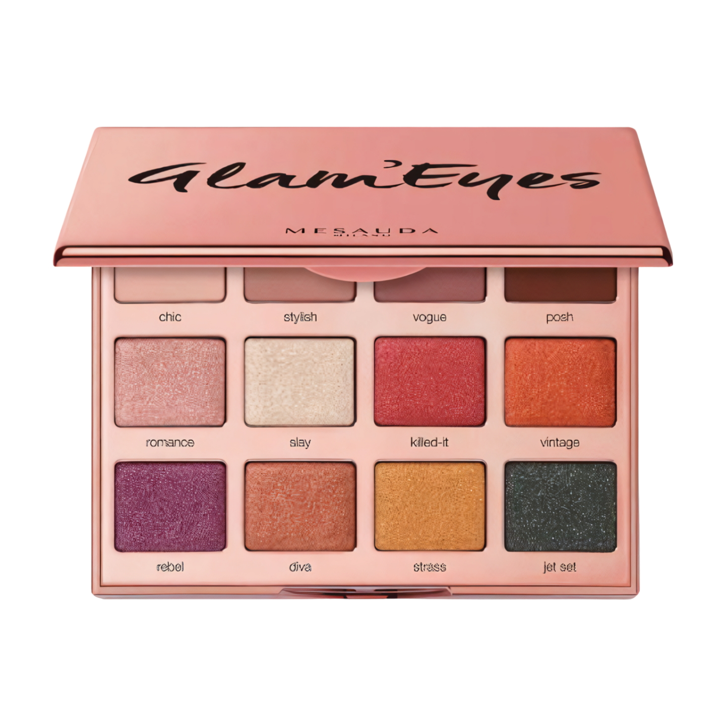 Silmämeikkipaletti sisältää 12 runsaspigmenttistä luomiväriä, joissa on kolme eri tekstuuria: matta, helmiäinen ja kromi. Voit vapaasti luoda erilaisia väriyhdistelmiä saavuttaaksesi upean päivä- tai iltameikin!