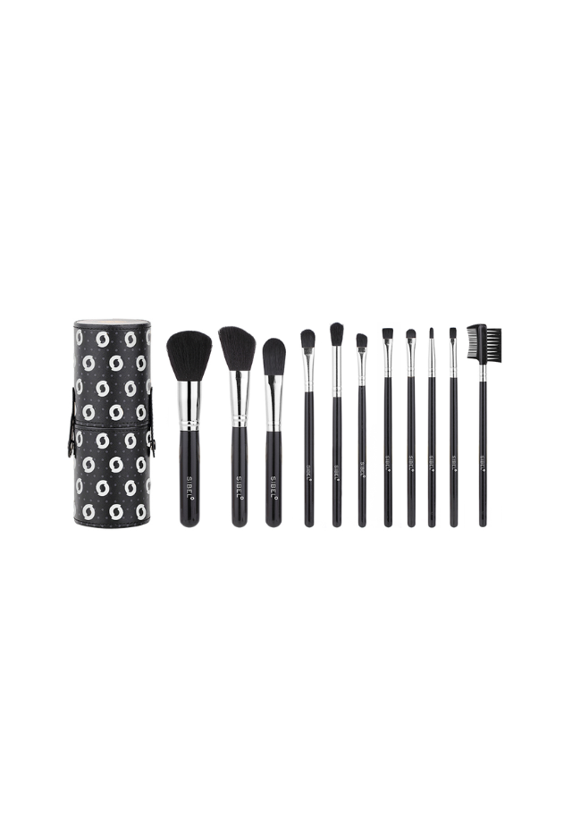 Sibel meikkisivellin, 11kpl synteettisellä karvalla varustettua kosmetiikkasivellintä – musta.