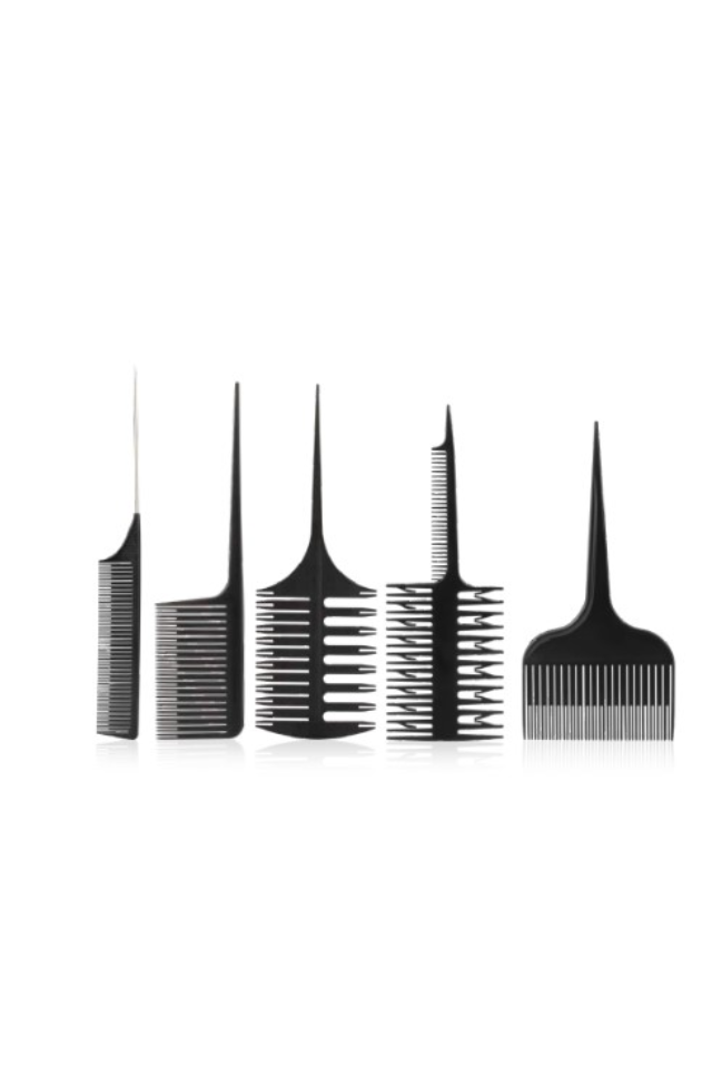 Kampasetti johon kuuluu 5 erilaista kampaa. Nämä kammat toimivat erilaisten värjäystekniikoiden toteuttamiseen. Pakettiin kuuluu 5 kpl kampoja. Jämäkät kammat kestävät käytössä ja kammat on helppo pitää puhtaana.