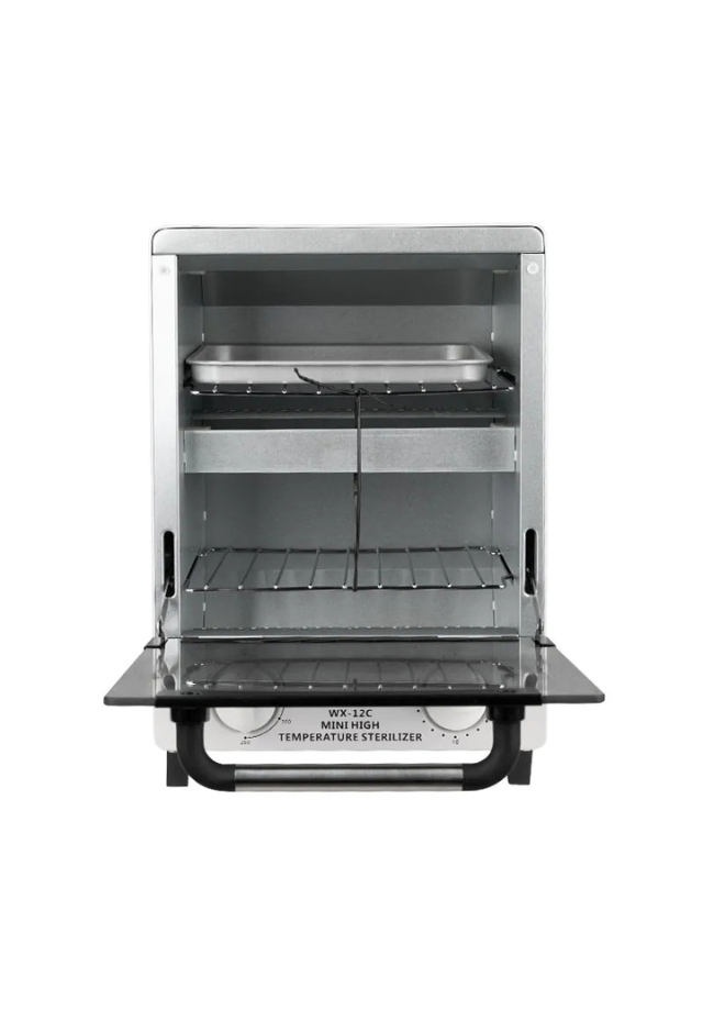 WX-12C korkean lämpötilan sterilointilaite on suunniteltu instrumenttien desinfiointiin. Laitteen sisäpinnat on valmistettu teräksestä, sisällä on irrotettava säiliö työkalujen säilytystä ja sterilointia varten.